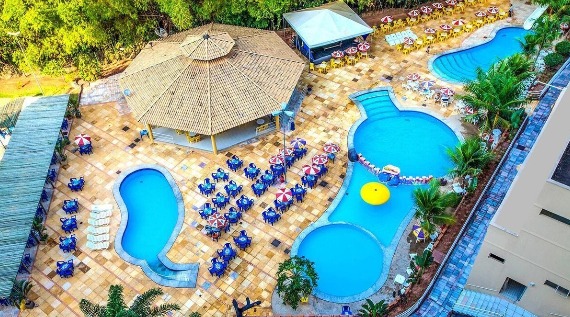 09 Piscinas, Toboáguas, Cascatas, Sauna, Lanchonetes, Bar, Restaurante com serviço de Wi-Fi free, Recreação Adulto e Infantil, Loja de conveniência, Quadra Poliesportiva, Playground, Sala de Jogos